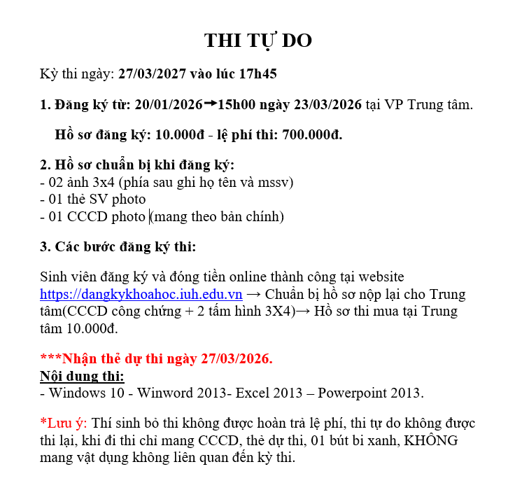 THÔNG BÁO THI TỰ DO NGÀY 27/3/2026 (20-01-2026)