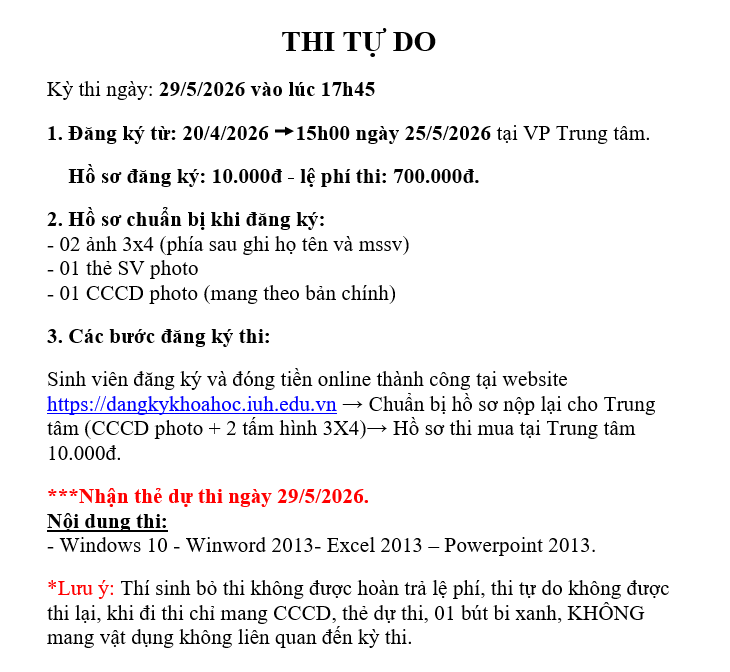 • THÔNG BÁO THI TỰ DO THÁNG 5/2026 (20-04-2026)